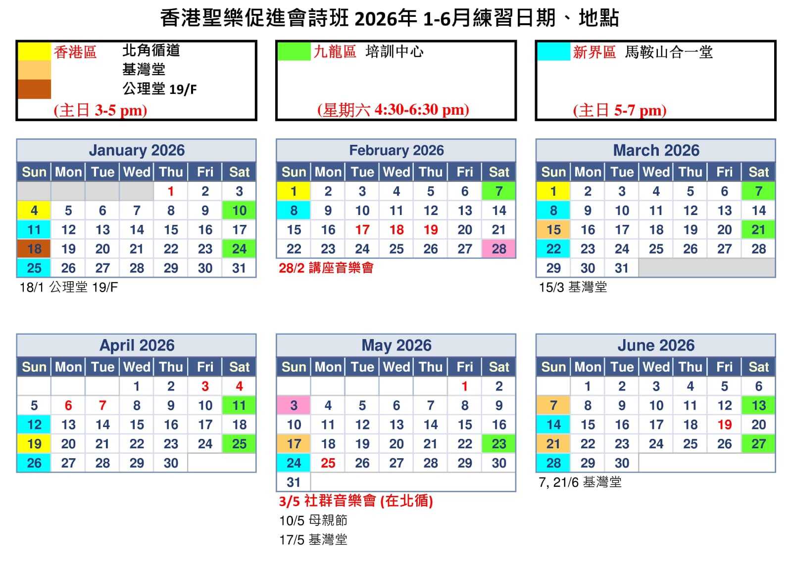 促進會詩班行事曆